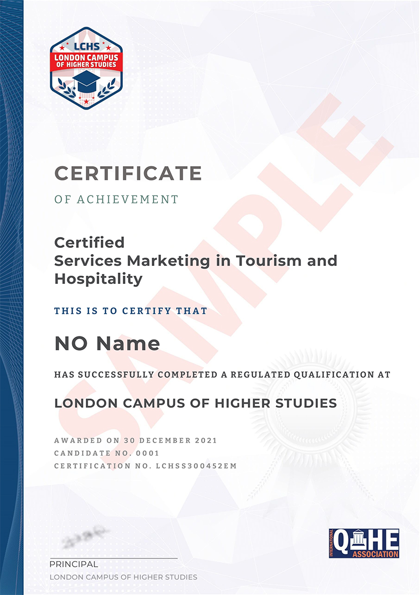 This certificate will bring you "Certified Services Marketing in Tourism and Hospitality" delivered by and awarded by LCHS - UK